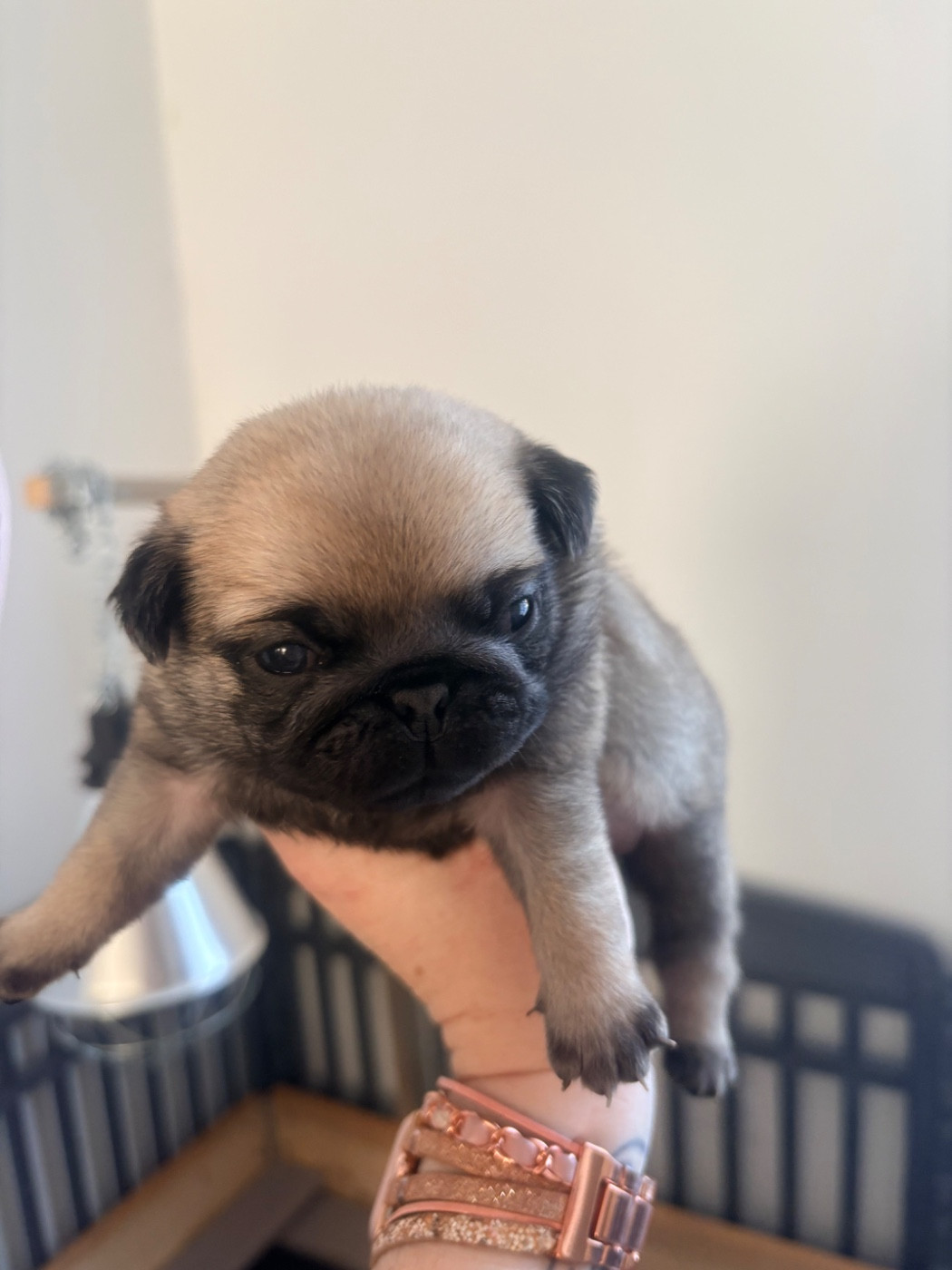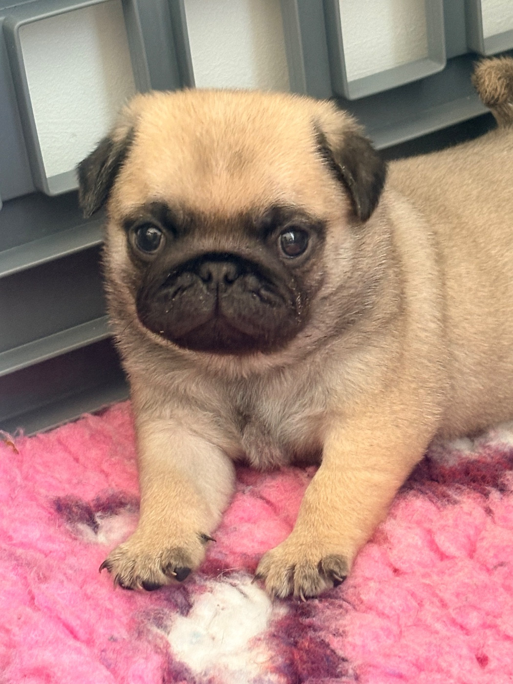 Chiot carlin mâle de couleur sable à masque noir. Issus du très beau mariage de Unik Tyson, jeune champion des expositions nationales et multiple CACS, et Vegas CACS et CACIB. Les parents sont testés des maladies génétiques et ont leur empreinte ADN enregistré. Pour plus d informations je reste à votre disposition.